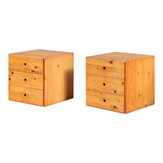 Pair of hanging bedside tables. Design 50s, composed of. 2 drawers each with brass handles. L 52/p 31/h 23, 5 cm. Some traces of uses, in good condition.