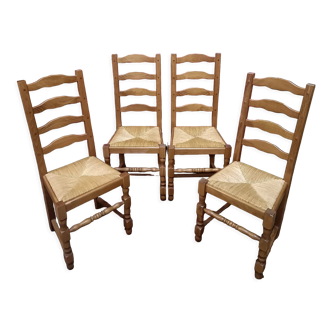 Set of 6 high-backed straw-seated chairs in solid oak from the early 1900s.