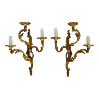 Pair of Louis XV style wall lights, Baroque, gilded bronze