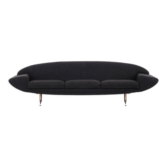 An icon of Scandinavian design, this "Pod Sofa" by Overman, Sweden, from the 60s/70s, perfectly embodies the Space Age aesthetic. Its moulded polyurethane structure, with enveloping lines, rests on a very distinctive cast aluminium base, both rare and decidedly stylish. A sculptural piece that asserts a strong visual identity. The sofa has been reupholstered in Deliux upholstery fabric, reference Léa, a high-end publisher. Its cherry red hue, ultra-trendy, faithfully replicates the original colour and enhances the iconic curves of the model. A characterful piece, ideal for a modernist, vintage, or design interior. Dimensions: Height: 77 cm. Width: 176 cm. Depth: 74 cm.
