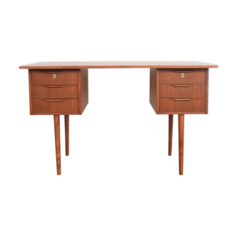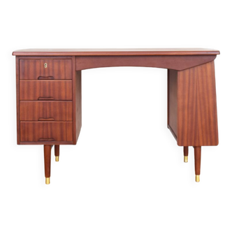 Vintage desk light wood 70s. It opens with 3 drawers, the left side is a niche with two shelves. Plateau unfortunately marked by time, traces humidity and sunstroke.