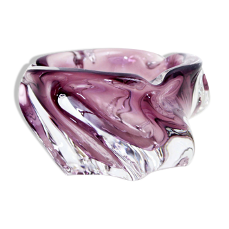 Vase “Wave / Vague” – ruby crystal – Val-Saint-Lambert – 1950s design. A piece that immediately captures the eye. This solid crystal vase signed Val-Saint-Lambert showcases a free and undulating silhouette, almost alive 🌊. Its deep ruby red, encased in a thickness of clear crystal, reveals the richness of the glassmaking craft. Attributed to René Delvenne, it perfectly embodies the creative momentum of the 1950s: more organic, expressive, and almost sculptural forms. ✨ A characterful piece, as beautiful empty as it is staged, that structures a space all on its own. Dimensions: 27 cm in diameter – 16 cm in height. Weight: 7.75 kg (heavy and high-quality piece) ✔️ Very good condition, signature present. Please feel free to contact me with any questions. Shipping possible worldwide.