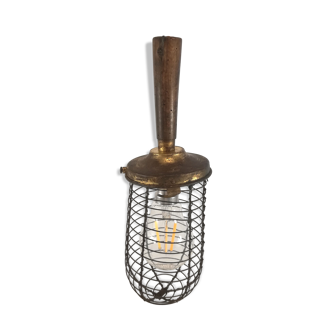 Beautiful vintage lamp walkman garage / workshop. From the 1940s/50s. It has a small industrial style, can be suitable in a workshop but also in a bedroom or other room. The handle is bakelite and in good condition, the grid is made of metal. The cable and socket are in good condition of brown color (no switch), it works as you can see. It is 29 cm long, it has its hook, so it can be hung, hung or placed on a piece of furniture. Porcelain socket b22; led possible, bulb should be put through the grid (does not remove) The many photos are part of the description.
