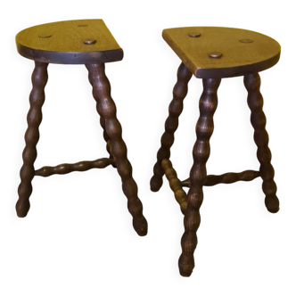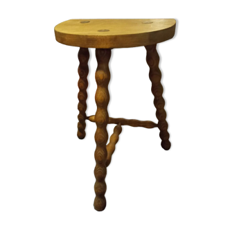 Wooden tripod stool half moon turned 60s