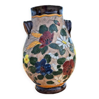 Vallauris glazed ceramic vase with incised flower decoration