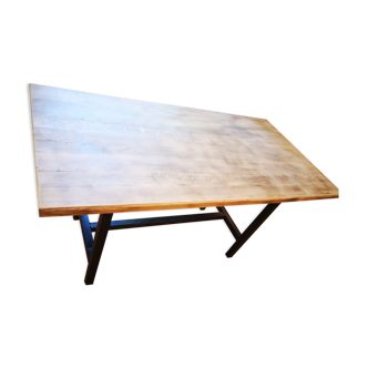 Old factory cloakroom bench of the 50s of artisanal manufacture foot in pipe tube weld to solder. Superb patina and state of use. Fully varnished. Size: Length 250. Width 32.5. Height 45.