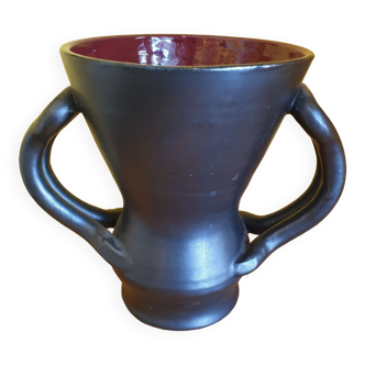 Vintage yellow Saint Clément jug from the 1950s. Very contemporary design. Mark on the bottom: 7821 StC (for Saint Clément) France 16. Height 19 cm. Width including handle 19 cm. Good condition with nice shine, except for a tiny non-through hairline (see photos).