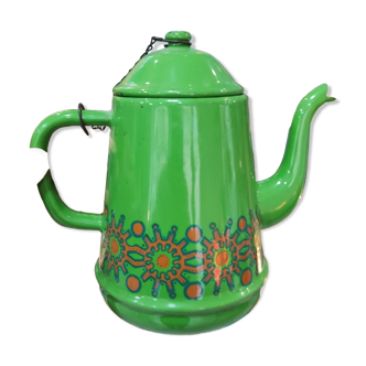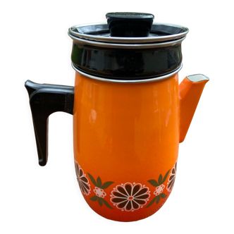 Red enamel coffee maker with a black enamel filter. The coffee maker is in good condition. Condition: old objects may show signs of wear, see photos.