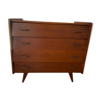 Vintage chest of drawers in light oak veneer with a niche that can be used as a bookcase or showcase. Spindle feet. Ideal in a child's room or in a living room for a vintage touch. Very good condition, only a small trace on top. Height 1, 12m, width 74cm, depth 40cm.