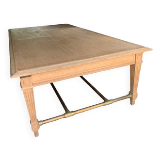 Farmhouse table. Top in raw solid fir. Painted beech feet with spacer.