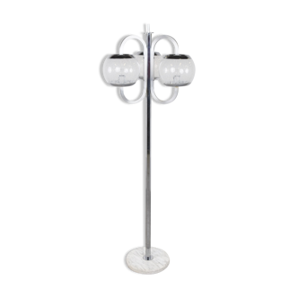 Beautiful pair of italian sconce, attributed to Stinovo. Each wall lamp is composed of 2 white opaline globes, mounted on black metal tubes and supported by brass strapping. Very good general condition. These sconces are vintage luminaires and can have very slight wear especially on black paint and micro scratches on the globes.
