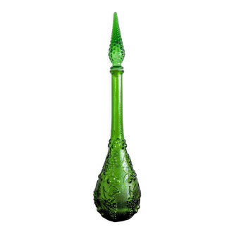 Italian carafe in green glass with bubble decoration, matching cap. Made in empoli (italy) Very decorative, very good 60s condition.