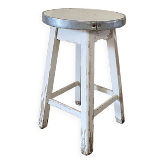 Metal stool, industrial workshop style. Condition: completely in its original condition, traces of rust and very patinated paint.