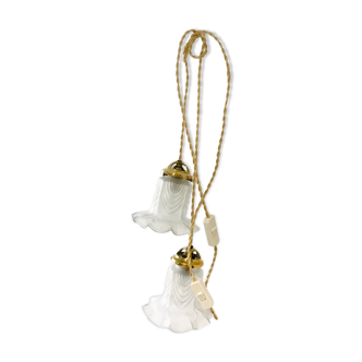 Walking lamp made from an old chandelier globe. The electrical part is new and meets current standards. Internal reference 111221. Height 10cm, diameter 17cm, wire length 140cm.