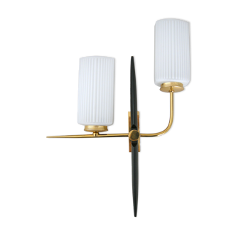Set of two vintage white double opaline wall lights with checkerboard pattern.