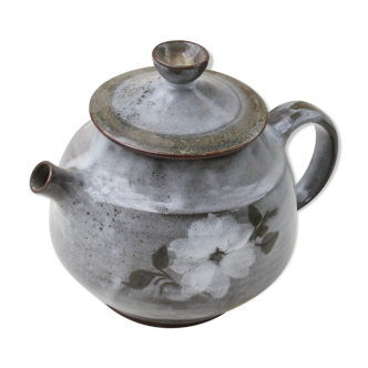 Magnificent and very original handmade glazed earthenware teapot. It seduces with its iridescent blue camaieu enhanced with flowers in pink tones. No indication of brand or origin. Artisanal production. Worked spout and lid. Quite heavy but very practical handle. Very good condition, no defects or chips. Little or no use. Good capacity height: 14 cms diameter 15 cms.