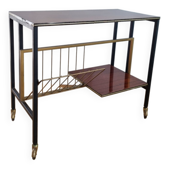 Elegant formica and aluminum magazine trolley from the mid-20th century. This fantastic piece was designed in Italy by Mb Italia in the 1960s (the wheels also have the MB stamp) Very good general condition for this object only the rim of one of the wheels has a small missing (see photo) but that doesn't stop it from running very well! Height 60 cm x Width 56 cm x Depth 25 cm