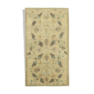 Product size and features. Ft size: 2'11" x 1'10" Cm size: 88 x 56. Stock code: 19717. ”customs fee is on the buyer” “cargo and customs fee of the product to be returned is upon the buyer.” Metarial: 50% wool, 50% cotton, shipping in one day and delivered in five-seven business days rug. If you are looking for a unique, luxurious, timeless statement piece for your home, then look no further because vintage rugs are just what you need. Every rug tells a story and so do the hands that make it using weaving techniques rooted in age-old traditions bringing to light centuries of cultural designs. These rugs are created by hand demonstrating the craftsmanship and diligence in each detail. Vintage rugs were made all over turkey with sizes and designs of bold striking patterns and beautiful color combinations that differ depending on the region and the household they were made for. In the summer, turkish people would collect wool and needed materials, then they would weave them in the winter during which they had free time. It was usually a job done by the older generation. They would weave these rugs for their own homes, as wedding gifts to their daughters and sons or as gifts to their close friends. It was considered to be a precious gift because not only were they hand-made, but they also took a lot of time to make. Our job: we collect and clean the rugs through a special washing process, we repair any damaged pieces and we then sun-fade them in order to give them a perfect vintage look and to allow the rug to easily blend with the furniture in your home. This vintage rug is made in late 20th century, hand-woven using a combination of 50% wool and 50% cotton, getting its strong yet soft nature from cotton and its durable and insulating nature from wool. The marriage of cotton and wool combines their benefits and creates a well-rounded rug. You wont be compromising on quality when purchasing our vintage rugs. Customs fees belong to our customers.