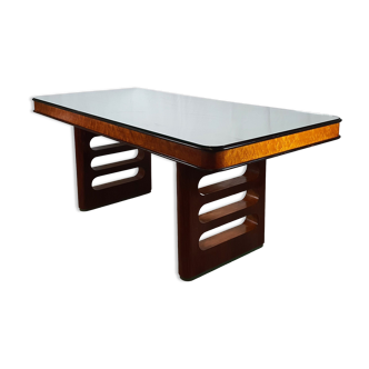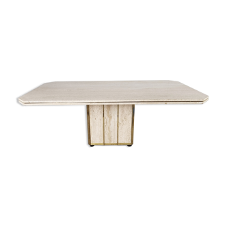 Lacquered and brass table, with rectangular top and central leg, 1970s, created by Jean Claude MAHEY (signature on the central leg). Dimensions 220 X 112.5 X 72 cm. Wear and tear.