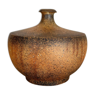 Swollen-shaped soliflore vase in cloudy blue enameled ceramic. Incised signature.