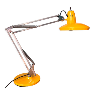 Red articulated workshop lamp, brand fase de madrid. It has some traces of time and a dent on the lampshade, this does not take away its charm.