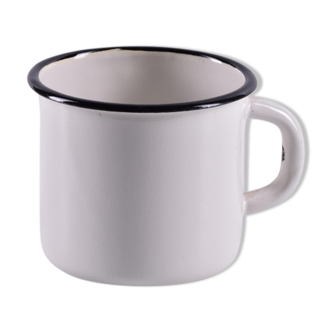 Bernardaud mug, limoges france. White porcelain with blue edging. Traces of use, capacity 20 cl. Dimensions: d 9 cm, l 11 cm, h 6.5 cm. V1078.
