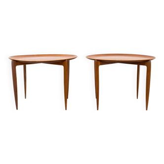 Pair of vintage bedside tables. The bedsides have been cleaned, sanded, repainted and waxed. Celadon green paint was applied. They each have a healthy, clean drawer.