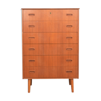Vintage teak 'tallboy'|chest of drawers|1960s cabinet|danish. Period|60's. Design|unknown|denmark. Condition|good|light signs of use|key is missing. Size|116 X 66 X 38 (hxwxd) Material|teak; .