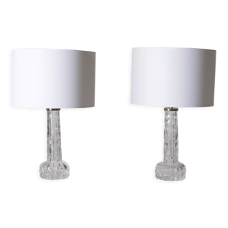 Pair of scandinavian crystal table lamps by carl fagerlund for orrefors. Sold without lampshades. Price for the pair.