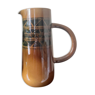 Pretty vintage service. Green ceramic. Comprising a jug with a handle. And two ceramic glasses. 1950s. Small signs of wear due to age.