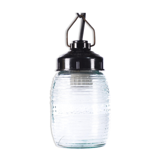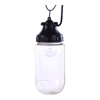 Old industrial style wall light. In glass and bakelite (repainted). The glass needs to be cleaned. Some defects (see photos). New electrics. H: 21 cm / l: 11 cm.