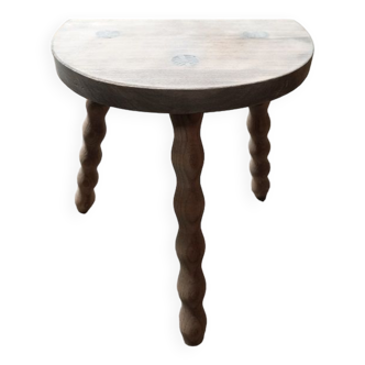 Pre-owned wooden stool enhanced with a blackened pearlescent slate effect wax (wax made from natural waxes and mother-of-pearl). Raw wood trim around the edge. Ideal as a decorative accent piece for a plant, lamp, or for a child's room. H 29.5 cm, W 29.5 cm, D 25 cm.