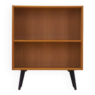 The bookcase was made in Scandinavian style. The structure is covered with walnut veneer. The legs are made of solid wood stained black. Surface has been refreshed. Inside, the space includes a practical shelf with adjustable height. This bookcase is ideal for a collection of books in a small living space and also works perfectly for displaying collectible items. Condition: The surface has been refreshed. Minor scratches, marks, and veneer losses are visible. Larger signs of use are always shown in the photos. The piece is ready for immediate use. For safety reasons, the legs may be detached and the shelf removed during transport. Assembly should not be a problem, but if needed, please contact us and we will provide an instructional video. Technical data. Height: 85 cm. Width: 88, 5 cm. Depth: 28, 5 cm.