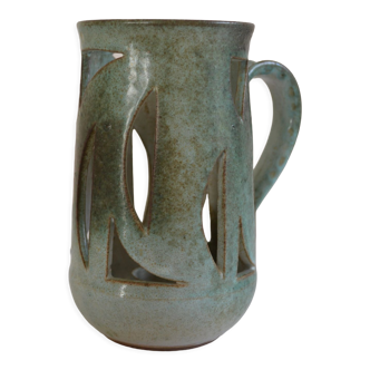 Original vase. Beige and old pink enamelled earth. Assembled earth pieces technique. Wire mesh appearance on the front. Unique piece. Signed r 2015. Only for dried flowers.l10xh15xp10. Ref2007.