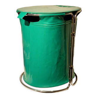 Orange skaï hat box from the 70s. Height to transform it into a bar to store bottles. Good general condition.