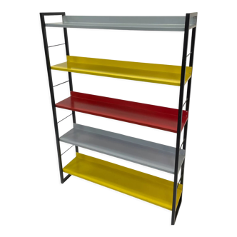 Vintage icon, designed by Niels Gammelgaard for IKEA in the 1980s, presented under the name "Enetri" and later "Guide". This particular piece is one of the most sought-after vintage Ikea models. It features a grey lacquered steel structure with 4 long reversible shelves, one side black and the other cream white. The edges of the panels are coloured yellow, blue, red, and green. The design and materials of the GUIDE or ENETRI model are much sturdier and more durable than its later reissues. Dimensions of the furniture: L.170 x H.160 x D.32 cm. Each shelf measures 30 x 170 cm. The piece is in excellent condition with some minor signs of normal wear for the age of the shelf. Feel free to ask for questions and/or photos.