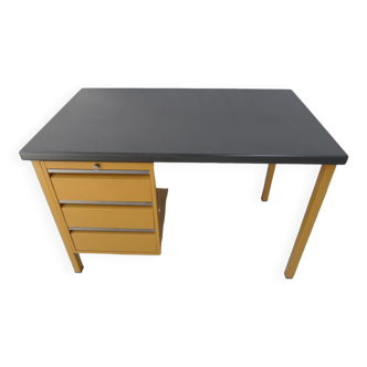 Dentist's furniture from the 70s/80s. With 2 doors and multiple drawers. A few stings on the top of a door. Black and white cabinet with an aluminum strip on the tray. Dimensions: height 86 cm width 172 cm depth 50 cm.