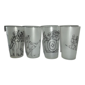 6 glasses old bird motif H 8 cm