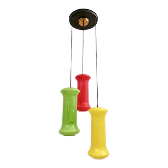 3 opaline pendant light 1960. New electricity. B22 socket some traces of wear but good condition. Height 64 cm 36x36 cm.