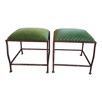 Honey-colored rattan stool from the 60s-70s. Square in shape, covered with foam and an asia-themed fabric with beautiful oil blue and coral colors. The wood is perfect condition, clean and healthy. The fabric has meanwhile places of cuts (see photos) but the fabric is so pretty and authentic that I preferred to keep it as well. A beautiful comfortable and very stable room.