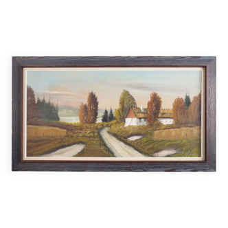 Robert Raoul André Guinard, born in Paris on May 3, 1896 and died in Granville on October 21, 1989, is an artistic personality from the Manche. Oil painting of a winter landscape. 1964.