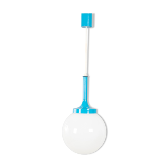 Vintage bubbled glass bell stroller from the 60s/70s. In very good condition / with new cable. Total height / 70 cms. Bubble glass lampshade / height 15 cms and diameter of 12 cms at the top and 9 cms at the opening. Sold as is as shown in the photos.
