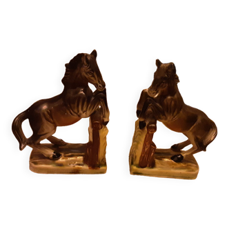 Pair of white horse bookends slight wear on one of the manes: see photos size: 15 cm high, the base is 7.5 cm long and 7 cm wide do not hesitate to look at all my ads possibility of very careful grouped shipments with bubble wrap more economical and more ecological for shipments outside france contact me for the price 340.