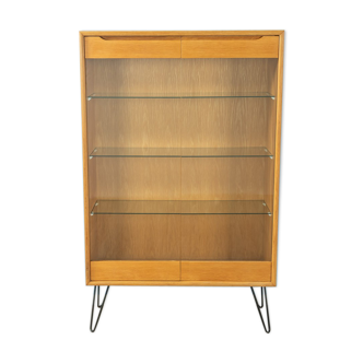 Metal window, 1 glass door and 3 shelves made of glass, blackened metal...