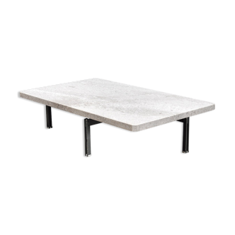 French work, circa 1970. Vintage industrial metal table, rolling on one side. Made from an old postal sorting tray resting on two casters and two legs. A unique vintage piece with a beautiful patina. Ideal for a workshop, loft, etc. H: 25 cm - W: 130 cm - D: 73 cm.