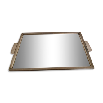 1950s. Originally a tray, which can easily be turned into a wall mirror (just attach a hook to the back) The wood has been stripped, sanded and left raw. The mirror shows discreet traces of use and time. Some spindle holes treated.