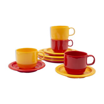 Set of 6 smoked glass cups and 5 saucers signed vereco, iconic vintage 70s, perfect condition like new, cup height 7cm, diameter 7.5cm, saucer diameter 13cm.