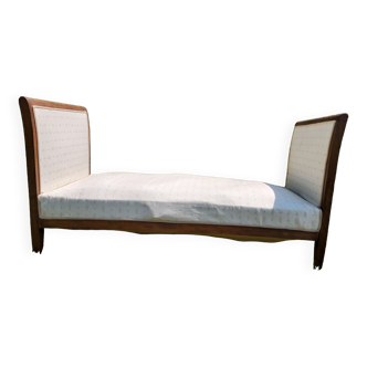 Bed made of walnut (width 84 cm; height 90 cm; length 197 cm) in good condition and sold with its mattress base, which is also in good condition and was used by my daughter during her childhood. The bed can be easily disassembled for transport.